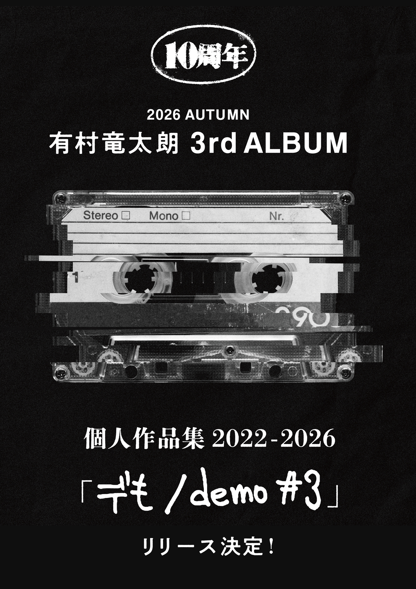 【リリース情報】2026年秋 有村竜太朗 3rd ALBUM 個人作品集2022-2026「デも/demo #3」リリース決定 NEW 2026.03.06 Pickup Tweet シェア 2026年秋 有村竜太朗 3rd ALBUM 個人作品集2022-2026「デも/demo #3」リリース決定 詳細後日公開 次の記事 前の記事